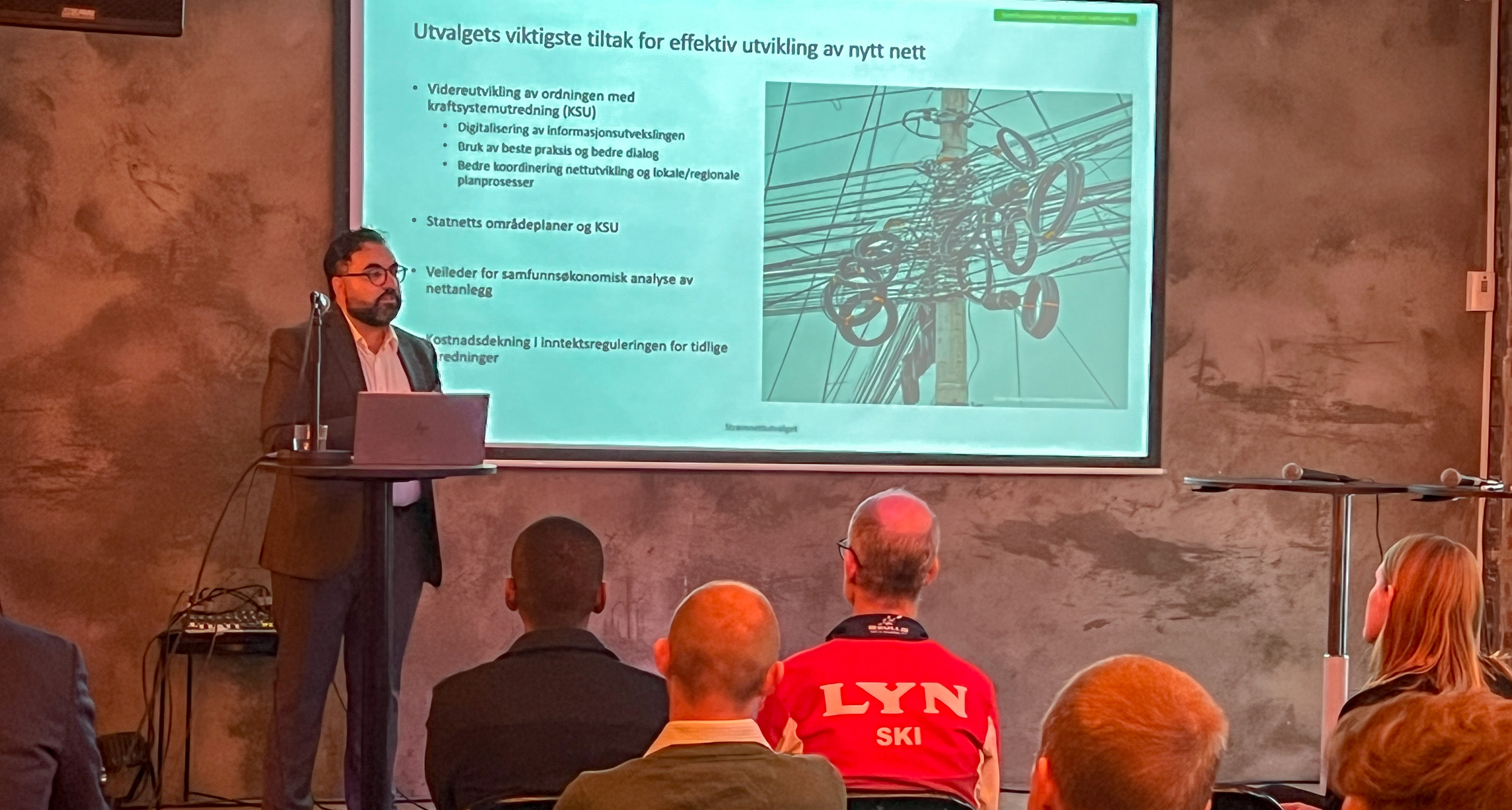 Manus Pandey, Vice President i Statkraft og medlem av strømnettutvalget, gjennomgikk utvalgets NOU-rapport “Nett i tide”. Som også påpekte at det er mange flaskehalser i utbyggingen av strømnettet som må løses.